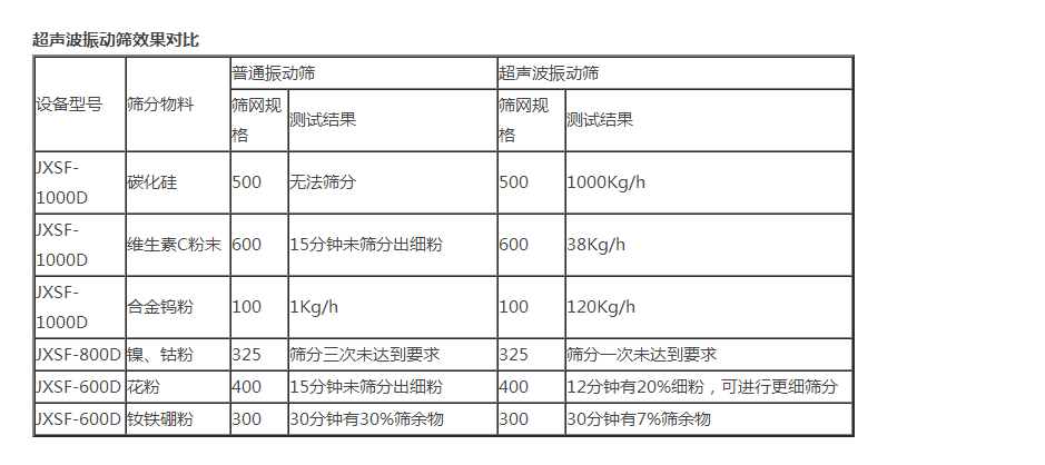 JXSF系列超聲波振動(dòng)篩篩分精度可提高1-100%,產(chǎn)量可提高1-20倍;真正滿足600目以上工業(yè)化生產(chǎn)需要!